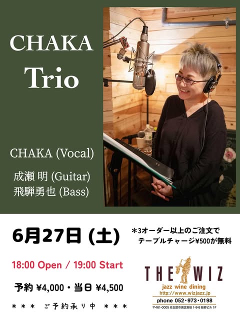 | 【 出演者 】 | CHAKA(vo)、成瀬明(g)、飛騨勇也(b) |